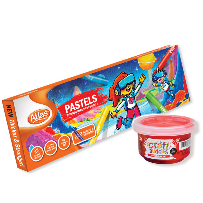 Atlas oil pastel 24 color with free craft buddies finger paint tub